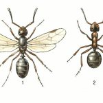 ), the larvae imitate ants, with which they live on the leaves and flowers of shrubs. Moreover, although the body of the larva is thicker than the body of an ant, on it, against the light green background of the abdomen, a dark pattern is drawn, reproducing a narrow “waist” and a swollen abdomen, typical of ants. - In the Malayan grasshopper ( Leptoderes ornatipennis