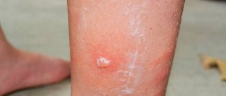 - Tick-borne borreliosis. The disease occurs in three stages. Initially, a red ring forms at the site of the bite, the edges of which rise above the healthy skin. Its diameter is about 10 cm. Gradually, the central part of the skin acquires a pale tint, then turns blue. A crust appears on the wound and becomes scarred. After 3 weeks, the spot disappears. The second stage appears after 2-3 months. Muscle pain, arthritis, and heart rhythm become erratic. If treatment is not carried out, the disease progresses to the third chronic form, which is accompanied by complications in the form of dermatitis, polyarthritis, and damage to the nervous system.