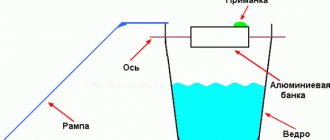 This device has proven itself well in catching rats and other rodents. You need to choose a cylindrical vessel: a tin can, a smooth plastic bottle, etc. It is dug vertically into a deep ditch and the bait is placed. Once the rat gets inside, it will no longer be able to get out along the smooth walls of the cylinder. The disadvantage is that you have to wait until the pest dies and then get it out yourself.