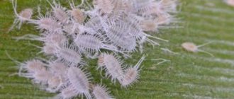 Mealybugs get their name from the flour-like coating they have on their bodies. The insects are also called hair lice because their body appears to be covered with fur. Pests settle on indoor plants, feeding on juice that is sucked from buds and young shoots. The pest can be detected by white spots on the leaves and stems.