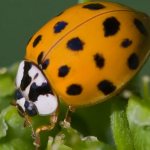- Взрослая самка имеет округлое тело рыжей или желтоватой окраски с черной головой. На туловище присутствуют отметины черного цвета. Длина особи может достигать одного сантиметра.
